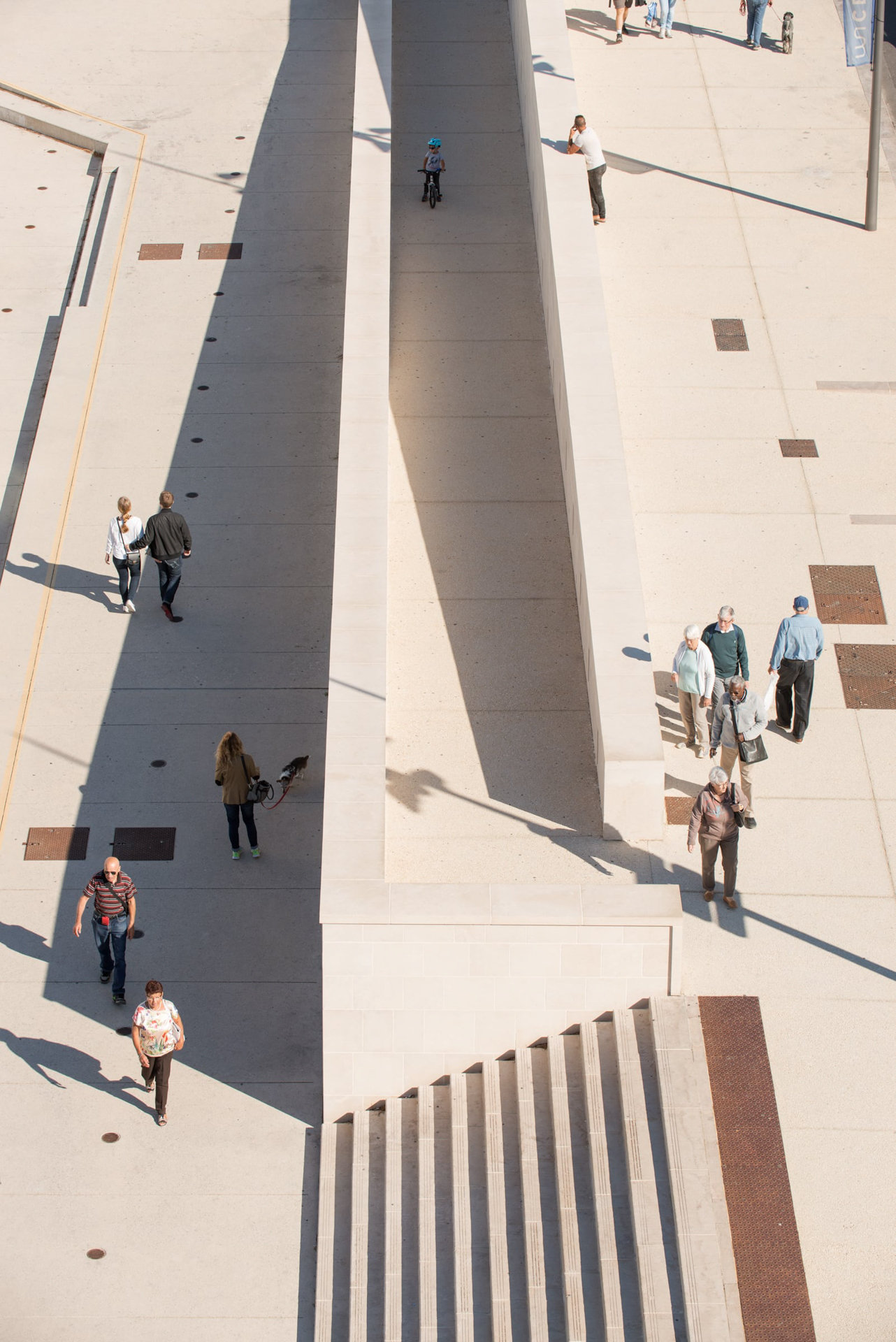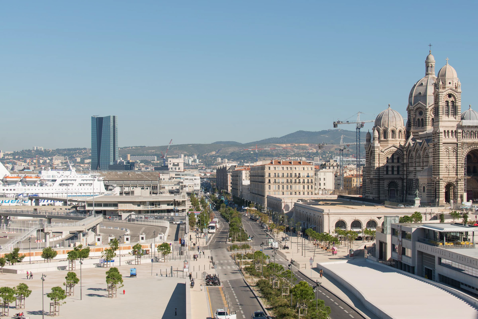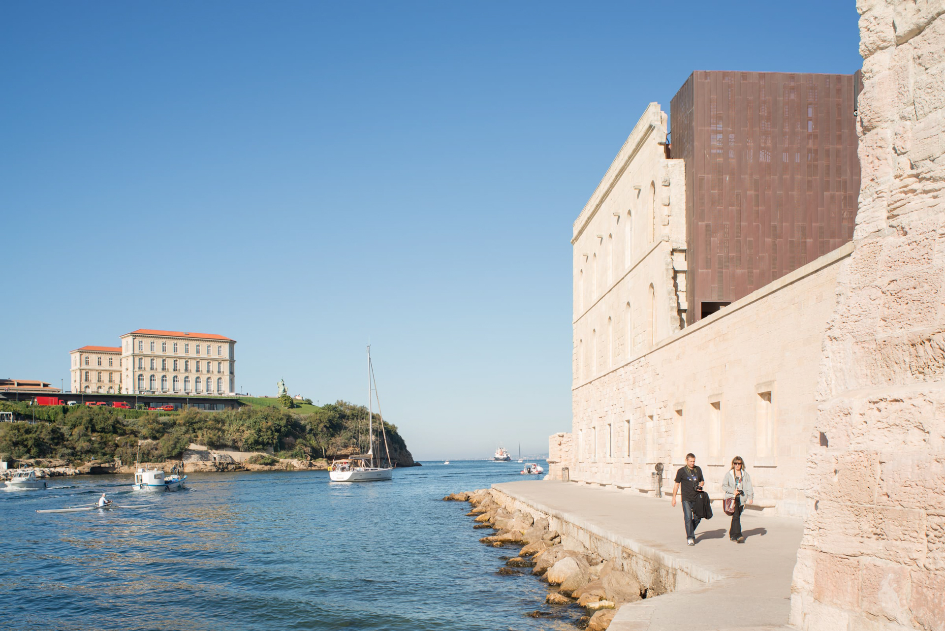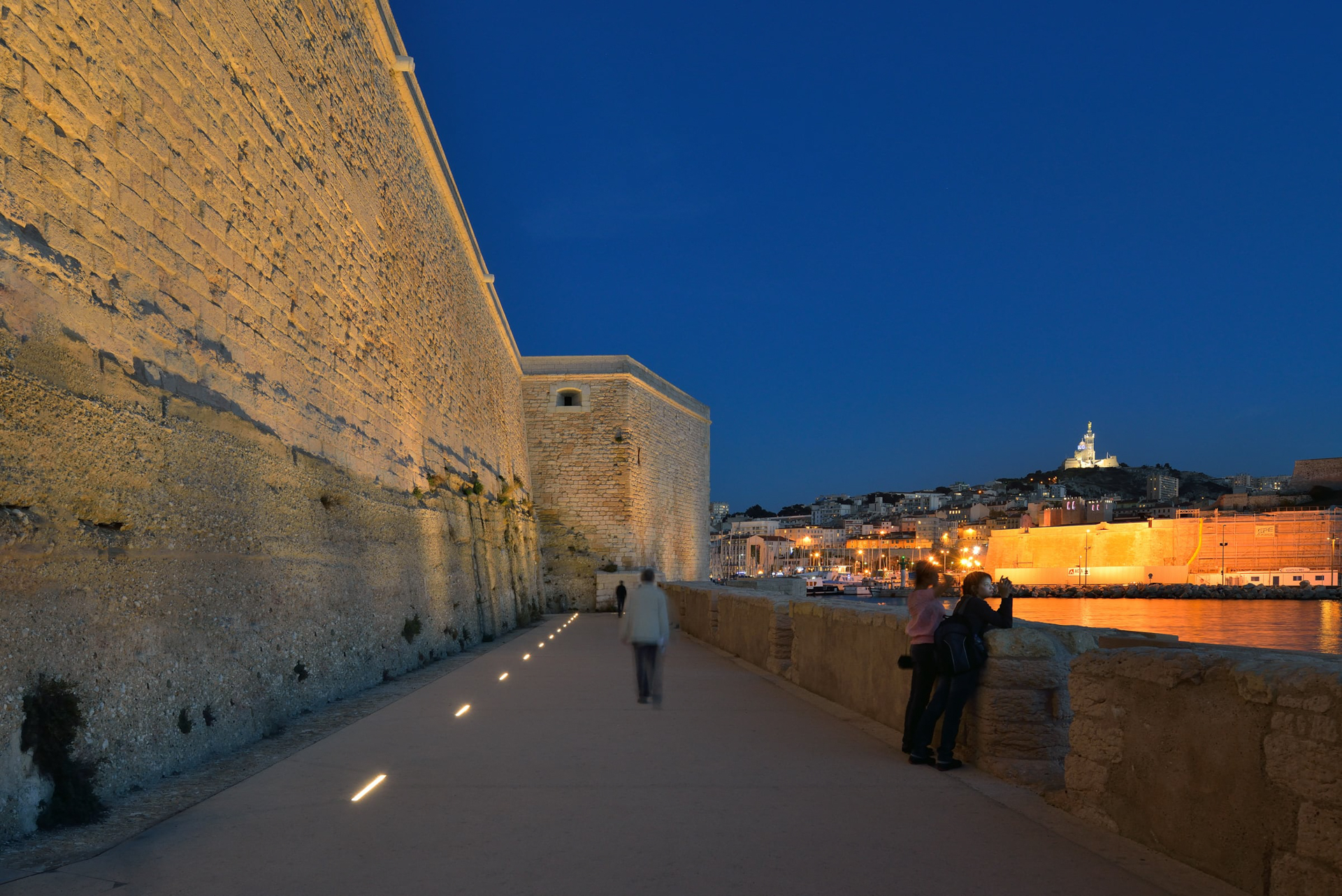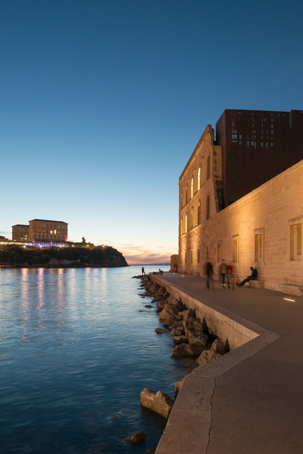 Reportage photo d’une vaste promenade urbaine imaginée par Ilex | paysage + urbanisme à Marseille : une liaison fluide entre la ville et la mer, des végétaux méditerranéens et un grand front de mer repensé.